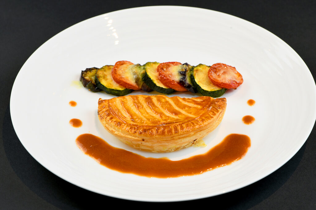 Chausson au fruits de mer avec tian de légumes et sauce Américaine